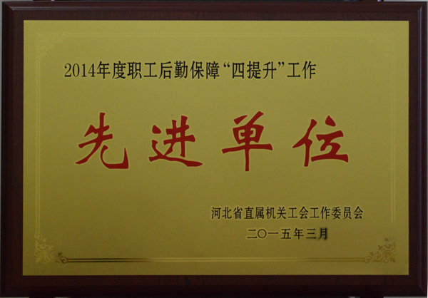 公司在2014年度職工后勤保障“四提升”活動中,被河北省直屬機關工會工作委員會評為省直系統先進單位。