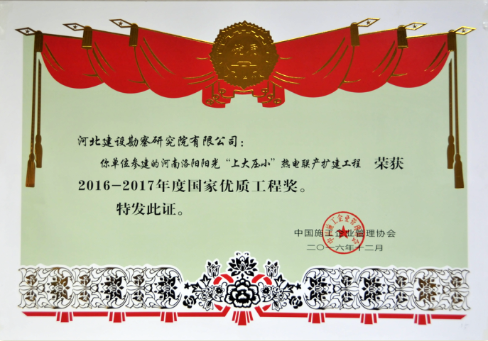 近日,由中國施工企業(yè)管理協(xié)會組織的2016-2017年度第一批國家優(yōu)質(zhì)工程獎評審會在北京隆重召開。國家工程建設(shè)質(zhì)量獎評審組聽取了2016-2017年度第一批國家優(yōu)質(zhì)工程獎評審工作報告和專家組長對參評項目復(fù)查情況的匯報,對參評項目進(jìn)行了綜合評議、質(zhì)詢答辯和記名投票,確定了2016-2017年度第一批國家優(yōu)質(zhì)工程獎候選項目。我公司參建的新疆華電喀什熱電有限責(zé)任公司的2X350MW熱電聯(lián)產(chǎn)工程、河南洛陽陽光“上大壓小”熱電聯(lián)產(chǎn)熱電工程最終通過評審榮獲了國家優(yōu)質(zhì)工程獎。