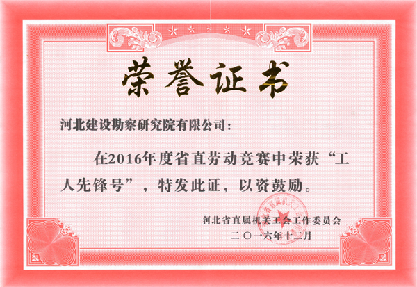 根據(jù)河北省直屬機(jī)關(guān)工會(huì)工作委員會(huì)2月27日發(fā)布的冀直工【2017】4號(hào)文件《河北省直屬機(jī)關(guān)工會(huì)工委關(guān)于2016年度勞動(dòng)競(jìng)賽情況的通報(bào)》,對(duì)在2016年度勞動(dòng)競(jìng)賽活動(dòng)中成績(jī)突出的單位和個(gè)人進(jìn)行表彰。其中,包括我公司在內(nèi)的48個(gè)單位被評(píng)為省直“工人先鋒號(hào)”。