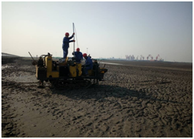 根據工程要求、地層特點及擬采用的基礎形式,勘察手段采用了鉆探、標準貫入試驗、波速測試、十字板剪切試驗及扁鏟側脹試驗,關鍵環節照片詳見圖2-圖6。土工試驗項目包括含水量試驗、界限含水量試驗、比重試驗、直接快剪試驗,固結快剪試驗、三軸固結不排水剪切試驗、顆分試驗(篩分法、水析法)、水質簡分析及土的易溶鹽試驗、室內滲透試驗(水平、豎直)、無側限抗壓強度試驗(原狀土)等。