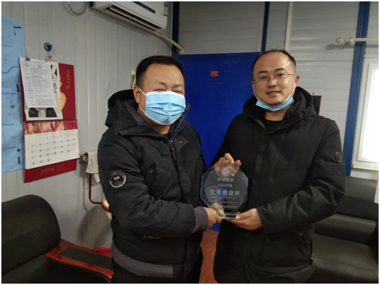 公司邯鄲項目部自2013年以來先后承接了河北安居房地產開發集團有限公司的安居東城S5、S6地塊沉降觀測項目、政通二期東西地塊基坑監測項目、廣平縣水岸瀾苑基坑監測和沉降觀測項目。2020年12月份,河北安居房地產開發集團有限公司對其開發項目監測單位進行首次評比,業主方各項目負責人均認為我公司服務態度好,安全防護、防疫措施到位,數據反應及時準確,最終確定我公司為河北安居房地產開發集團有限公司2020年度優秀供應商,并于2021年1月8日下午由政通二期項目李延琪經理頒發優秀供應商獎牌,以表彰我公司作為參建方所付出的努力,并表示以后有新項目將會優先選擇我公司。