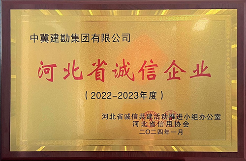 根據(jù)河北省信用協(xié)會文件“冀信協(xié)會字[2024]6號”文《關(guān)于公布2022-2023年度“河北省誠信企業(yè)”的通知》,我公司被河北省誠信共建活動推進小組辦公室和河北省信用協(xié)會評為“河北省誠信企業(yè)”。