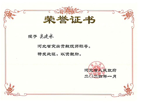 公司范建永同志榮獲河北省突出貢獻(xiàn)技師稱號